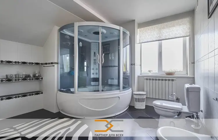 На Мансардном этаже просторная гостиная 31.0 м.кв., санузел с ванной, душевой кабиной, биде и раковиной, гардеробные и прихожая (как отдельная комната).