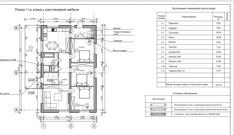 -Уже возведен свайно-ростверковый фундамент. Общая площадь дома будет – 122,74 м2, из которых 65,72 м2 – жилая зона. Планировка удобная и функциональная. Современные решения обеспечат комфорт в любое время года – электрическое отопление создаст тепло и уют, а собственная скважина с чистой водой избавит вас от зависимости от центральных систем. Канализация будет местная.