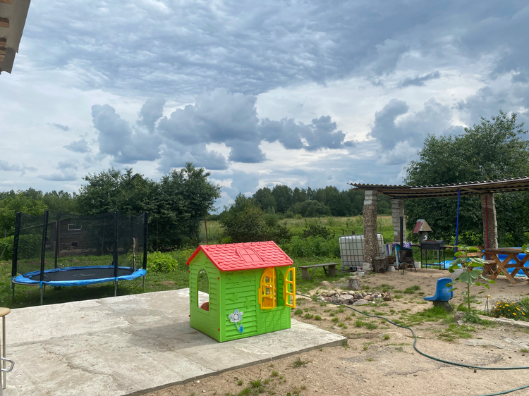 На участке остаются детская площадка с качелями/горкой, сезонный бассейн 3тыс.л. Залита бетонная площадка под беседку, пробурена скважина и есть 2 канализации (2 и 3 кольца).