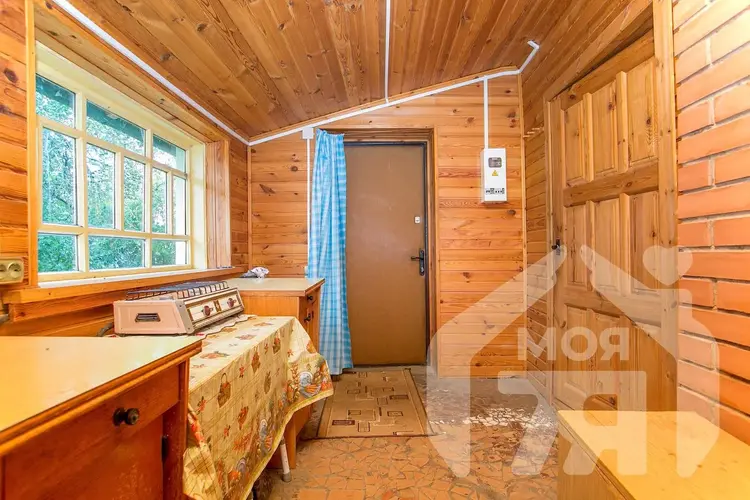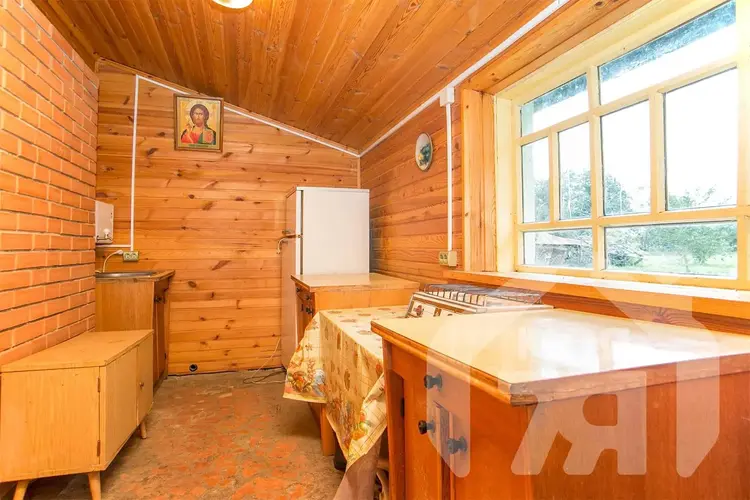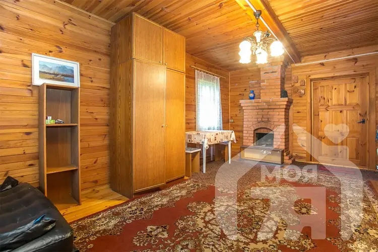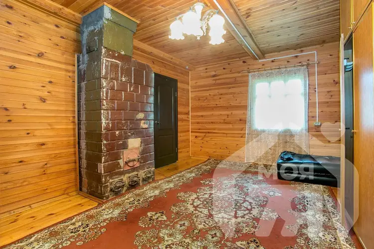 -Отопление печное, а в гостиной уют дополняет камин. На входе стоит прочная металлическая дверь, внутри дом отделан вагонкой.