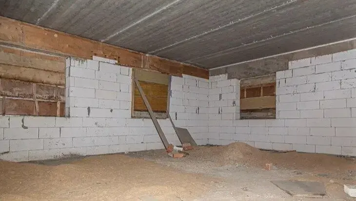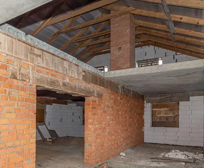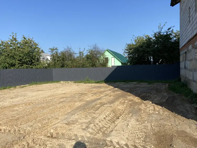 Недостроенный коттедж 70% готовности на ровном, спланированном участке. Огорожен с трех сторон.