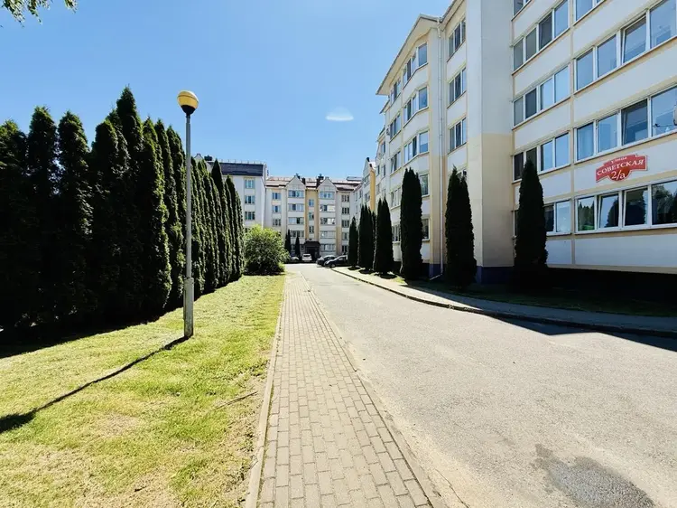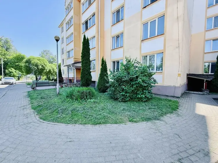 Много парковочных мест около дома. Ухоженный двор. Много туй, деревьев и цветочных клумб.