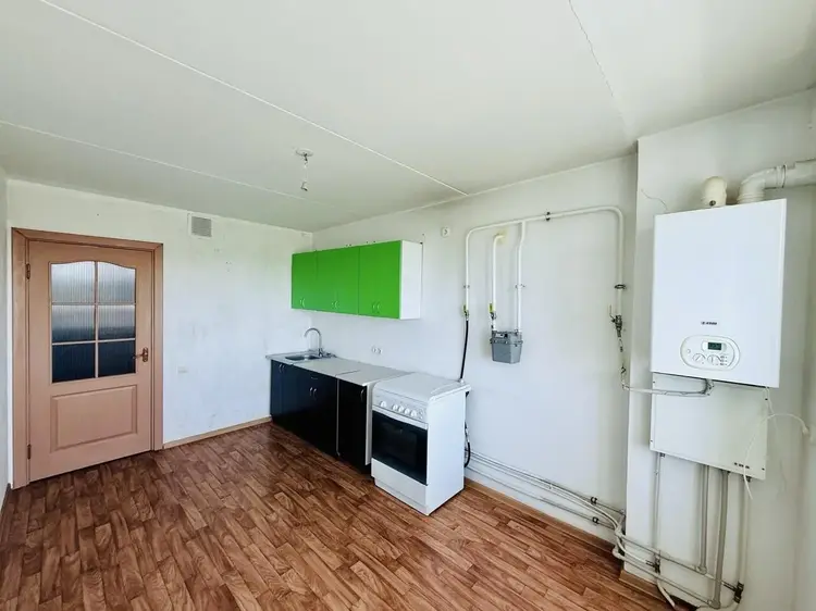 На полу линолеум. В жилых комнатах стены оклеены обоями. На кухне обои уже сняли, вам останется только поклеить то, что нужно именно вам.