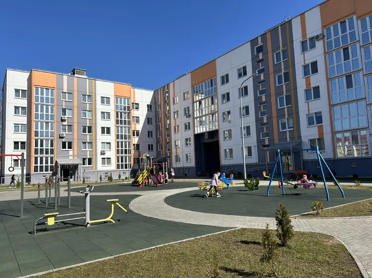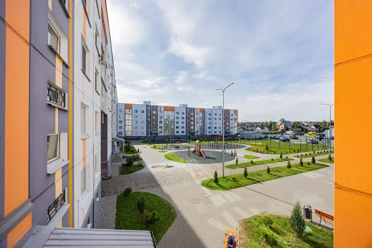 Огороженная территория двора обеспечивает безопасность детей. В квартире установлен видеодомофон с возможностью дистанционно открыть калитку. Во дворе современная детская площадка, а также крытая парковка для велосипедов и зона для барбекю — рай для активных и дружелюбных жильцов.