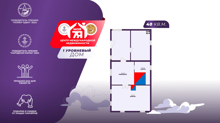- Площадь дома 40 кв.м. Жилая зона 22 кв.м. Кухня 5,52 кв.м. Пространство легко организовать под ежедневные задачи.