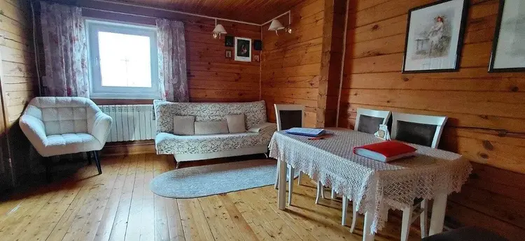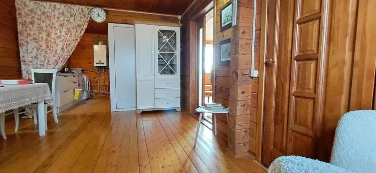 - Качество: Дом из бревна камерной сушки, без щелей, с большими окнами, пропускающими свет.