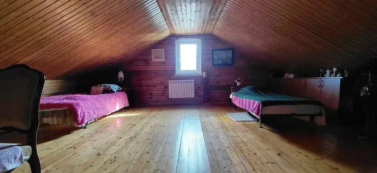 Гордость этой усадьбы — сохраненный дом 1937 года. Это не заброшенный хозблок, а полноценная летняя кухня с характером. За ним ухаживают, он "живой", в нем до сих пор приятно находиться. Две просторные комнаты — идеальное место для гостевой зоны, мастерской или уютных посиделок у печи. Это та самая "история места", которая чувствуется физически.