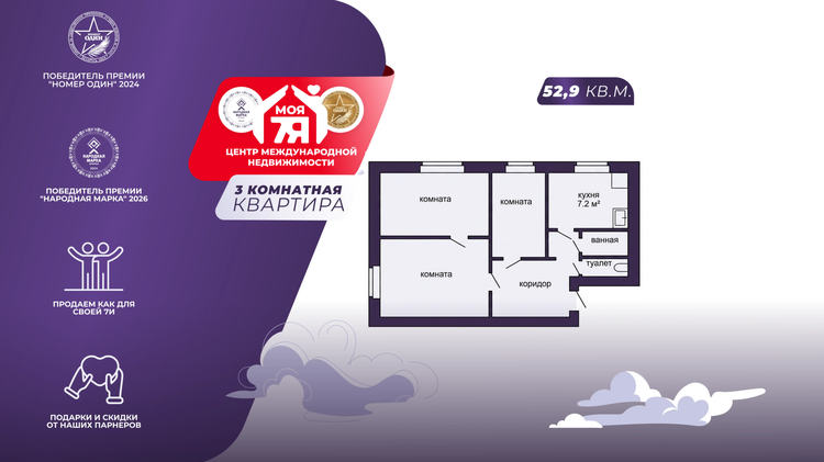 3-комнатная квартира в Лебедево, 5 км от Молодечно Продается светлая 3-комнатная квартира на 2 этаже 2-этажного кирпичного дома в агрогородке Лебедево, всего в 5 км от Молодечно. Общая площадь квартиры — 52,9 кв.м, жилая — 34,1 кв.м. Удачная планировка, совмещенный санузел, отопление от двухконтурного газового котла и собственный сарай. В шаговой доступности магазины, школа и другие удобства. Адрес: аг. Лебедево, ул. Октябрьская д. 8 -Продается светлая и уютная 3-комнатная квартира на 2 этаже 2-этажного кирпичного дома в агрогородке Лебедево, всего в 5 км от Молодечно. -Общая площадь квартиры — 52,9 кв.м, жилая — 34,1 кв.м. -Квартира с удачной планировкой: три уютные комнаты с окнами на две стороны, что наполняет квартиру естественным светом в течение всего дня. -Санузел совмещенный, а вместительный коридор добавляет свободы движению. -Отопление и подогрев воды обеспечиваются двухконтурным газовым котлом, что гарантирует стабильную температуру круглый год. -Полы деревянные, а частично остается мебель позволит заехать и жить без дополнительных затрат. -Особым преимуществом является наличие собственного сарая, что даст дополнительное пространство для хранения или хозяйственных нужд. -Квартира готова к проживанию, но при желании можно провести косметический ремонт по своему вкусу. -Кирпичный 2-этажный дом 1980 года постройки. -Расположение в агрогородке Лебедево приятно удивляет своей близостью к городской инфраструктуре, при этом в этом здесь сохраняется уединение и тишина. В шаговой доступности находятся все необходимые объекты: магазин, школа, детский сад, аптека, амбулатория, дом культуры, школа искусств и отделение почты — всё, что нужно для комфортной жизни. -До Молодечно всего 7 км, а транспортная доступность позволяет легко добираться в город. Эта квартира - отличный выбор для тех, кто ценит удобство с доступом ко всем благам инфраструктуры. Ищете выгодную недвижимость или хотите продать свою? Мы решим это для Вас с заботой и профессионализмом: - Купить квартиру или дом в Минске и области - Продать недвижимость по выгодной цене - Оформить ипотеку, семейный капитал или кредит на покупку недвижимости - Помочь с инвестициями в недвижимость - Подобрать дизайнерский ремонт или перепланировку - Выбрать лучший банк для выгодного кредита и лизинга * Напишите нам в удобный мессенджер - Viber, Telegram или WhatsApp, и мы ответим на все вопросы! «Моя 7Я» решит это, как для своей семьи: с любовью, заботой и желаемым результатом! Агентство недвижимости ООО «Центр международной недвижимости Моя 7Я» | УНП 193750826 | Лицензия: № 02240/484 выдана МЮ РБ 18.05.2024 г. | Страховое свидетельство БР 0005017
