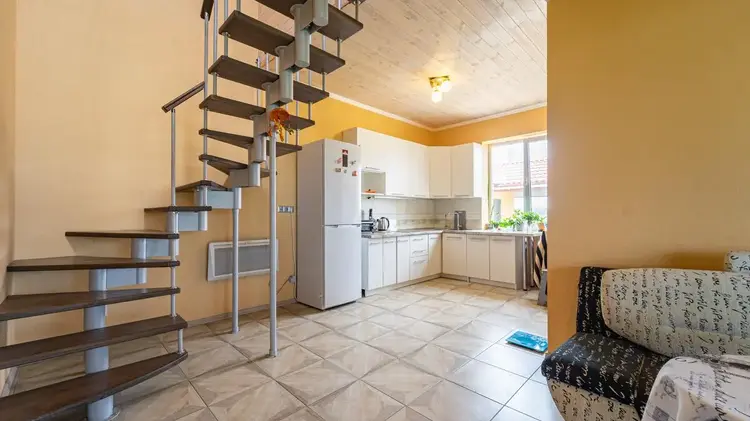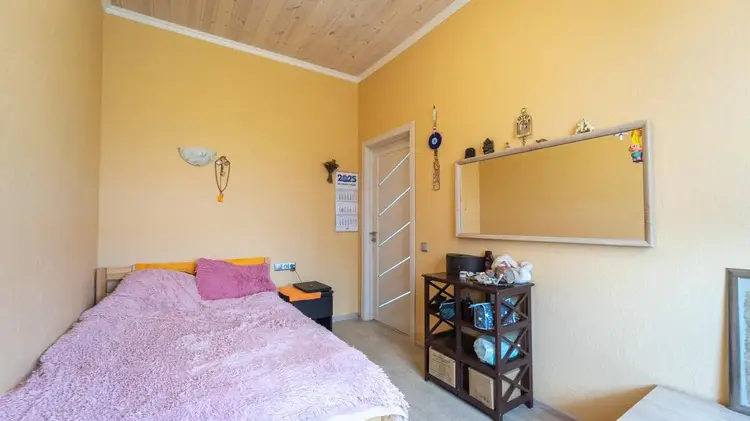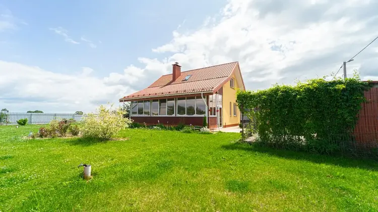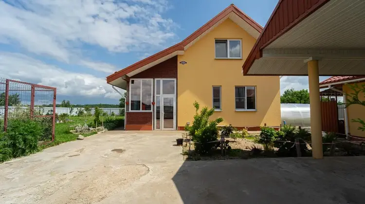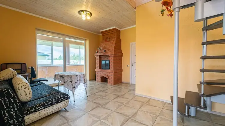 На первом уровне расположены: огромная веранда, кухня-гостиная, жилая комната, санузел с сауной. Удобная лестница на второй уровень, где расположены две жилые комнаты. Окна в доме расположены на обе стороны.