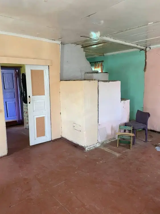 Деревянный дом, чистое помещение с рабочей печью.