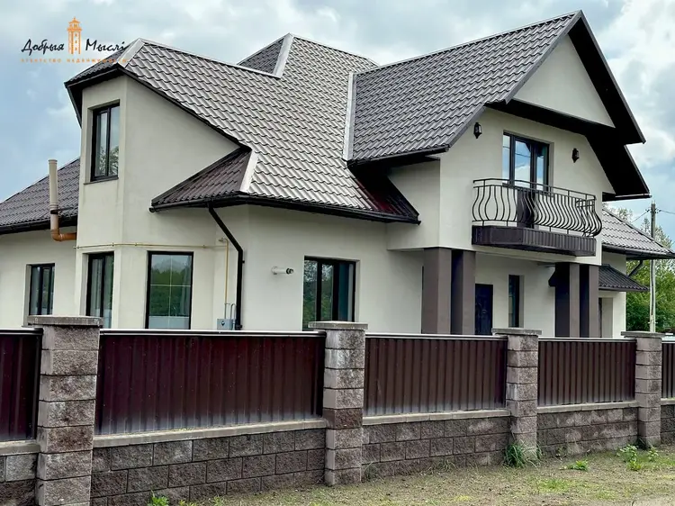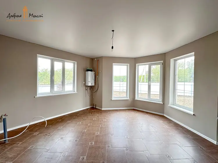 Коттедж построен в 2019 году. Стены из газосиликатного блока (толщина 300 мм), утеплен пенопластом (50 мм), оштукатурен и покрашен материалами Ceresit. Крыша - металлочерепица толщиной 0,45 мм, утепление минеральной ватой 20 см. Фундамент - ленточный, утепленный пеноплексом, оштукатурен и покрашен. Общая площадь дома 212,4 кв.м., по СНБ 242,9 кв.м.