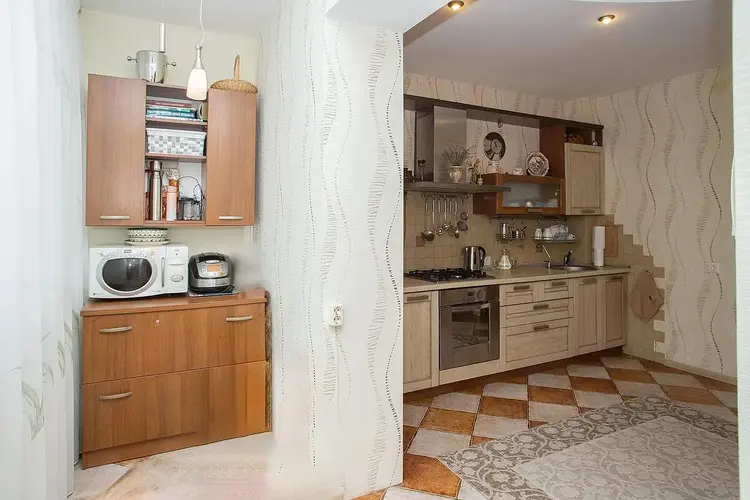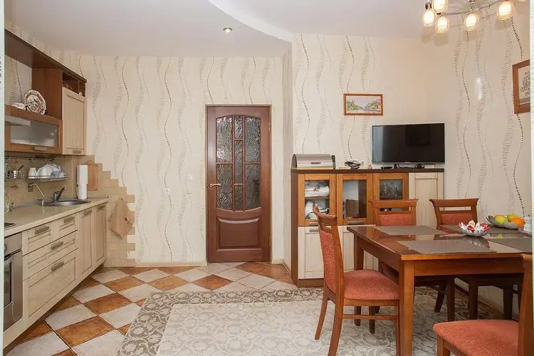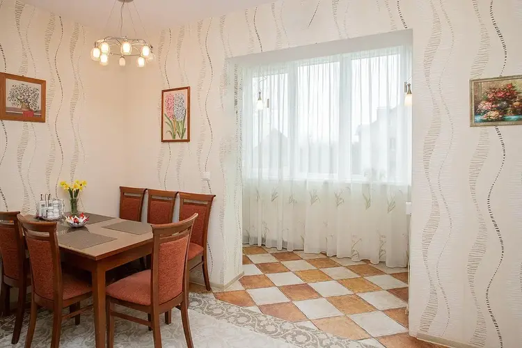 На втором этаже прихожая, кухня, огромный зал с балконом, гостевой туалет. Лестница на третий этаж деревянная, удобная, На третьем этаже расположены две жилые комнаты, просторный санузел, гардеробная, застекленный балкон. Мансарда представляет собой две комнаты, обставлены мебелью.
