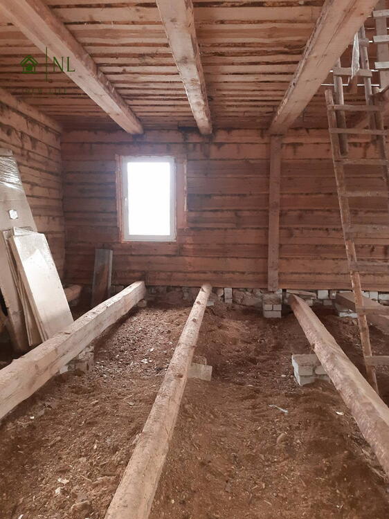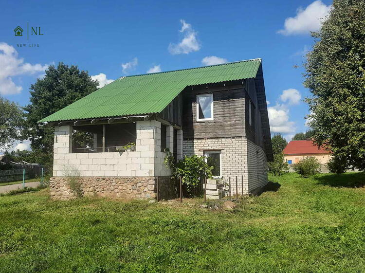 Первый этаж дома: деревянный брус + кирпич, второй этаж: деревянный щит, веранда из газосиликатных блоков, под верандой утеплённый, гидроизолированный погреб, крыша – шифер (новый), по всему дому новые пластиковые стеклопакеты, гараж – кирпич. Участок огорожен, к дому проведено электричество, заключён договор для подключения газа, центральный водопровод проходит на расстоянии 7 метров от угла дома. Посажен молодой сад. Хорошие соседи – местные жители, также много минчан-дачников.
