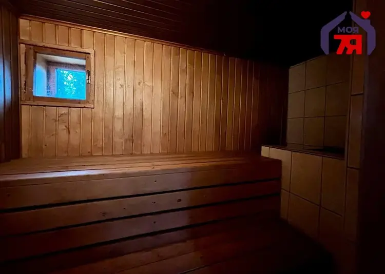 - Участок площадью 25 соток грамотно разделён на две части: ухоженный газон для отдыха и огород для любителей выращивать свои овощи и фрукты. Для приятного отдыха предусмотрена баня, где можно расслабиться после насыщенного дня.