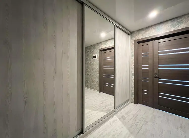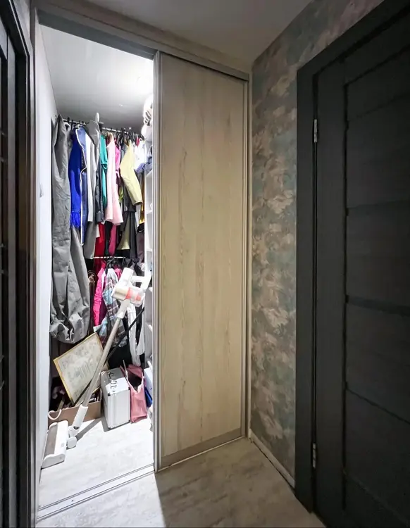 Продуманы места хранения. В коридоре - вместительный трехстворчатый шкаф-купе и дополнительно оборудована гардеробная.