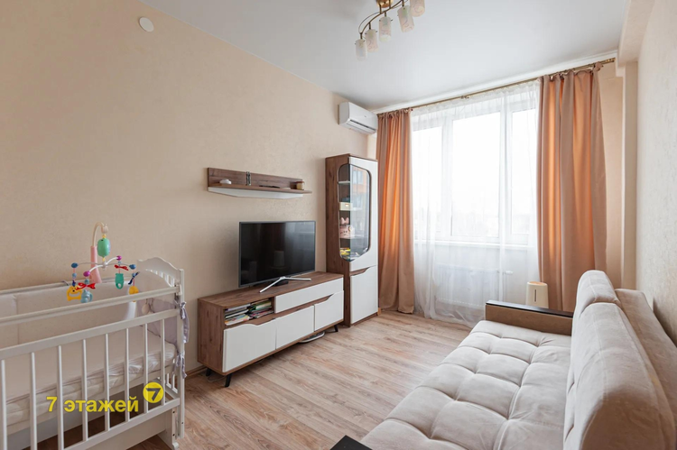 Квартира находится на 3-м этаже 7-ми этажного дома Жилого комплекса "Крона" построенном в 2016 г. Внешние стены керамзитобетонные панели и кирпич.
