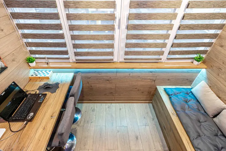 - Две изолированные комнаты — 20 м2 и 12,3 м2 (из комнаты меньшей площадью— выход на утеплённую лоджию с тёплым полом, оборудованную под рабочий кабинет)