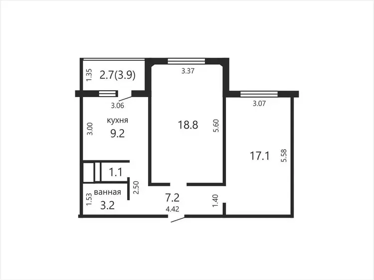 Все жилые комнаты изолированные, площадью 17,1 кв.м, 14,6 кв.м, 15,4 кв.м, 17,2 кв.м.