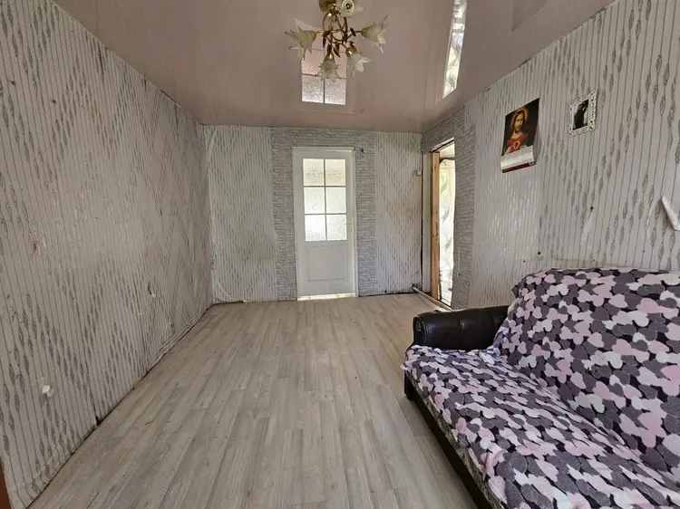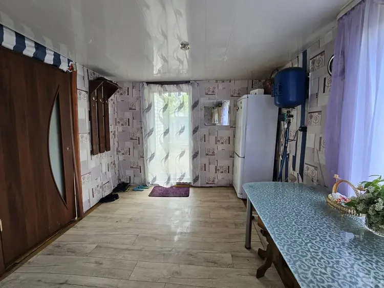 9,9 сотки земли, летняя кухня, сад, участок огорожен. Отопление котел, твердым топливом, газ по улице.
