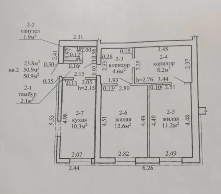 Продается ½ доля в квартире 50.9 м2 с участком