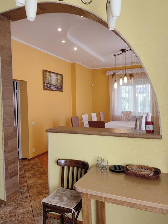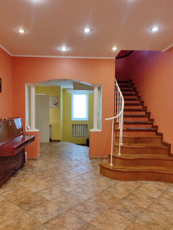 Первый уровень - холл, каминный зал, оборудованная кухня со столовой, кабинет, санузел, постирочная, бойлерная.