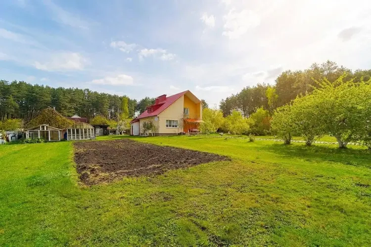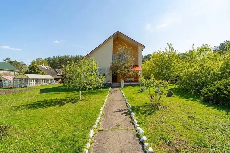 На просторном ровном участке площадью 18 соток располагается несколько строений : дом , баня, гараж и постройка хозяйственного назначения (помещение под мастерскую и сарай). Участок огорожден.