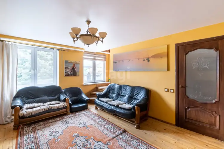 Современный дом 2003 г. постройки. Частная собственность. 2 Этажа + цокольный этаж. Общая площадь по СНБ 120,8 кв.м2 Жилая площадь 47,9 кв.м2 . Три изолированные комнаты 11,3/10,8/7,0 кв.м2 и очень просторный зал 18,8 кв.м2 с действующим камином. Кухня- 6,3 кв.м2. Два туалета и Ванная комната 4,5 кв.м2. Мебель. Кондиционер. Интернет оптоволокно.