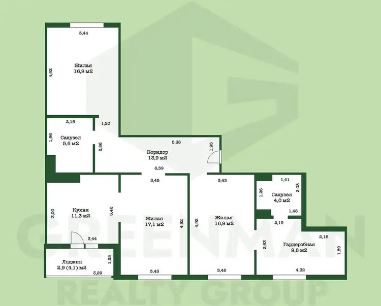 Вместительный встроенный шкаф в коридоре и спальне. Входная дверь – металлическая с дополнительным слоем шумоизоляции.