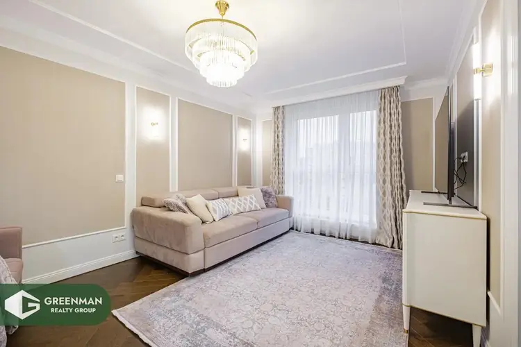 В квартире сделан современный ремонт в светлых тонах с использованием качественных материалов и наполнением мебелью и техникой известных мировых брендов. Полы – плитка Сквирел, ламинат елка 33 класс, сантехника в отличном состоянии, потолки натяжные Ferico с теневым профилем, стены выровнены и покрашены (декоративка Oikos), полностью разведена и заменена электрика, современное трековое освещение, бра и люстры под заказ, установлены межкомнатные двери-невидимки, по всей квартире панорамные окна в пол.