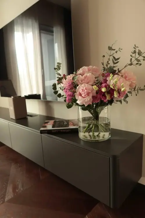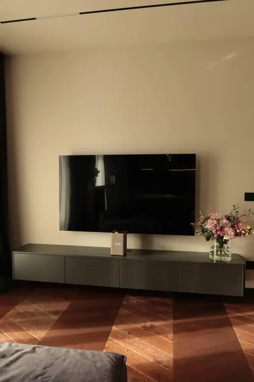 Люксовая итальянская сантехника, элитные смесители и душевые системы Zucchetti, премиальные итальянские полотенцесушители Margaroli, немецкий душевой трап Viega, изысканная итальянская плитка, приобреталась в салоне «Детали», лучший паркет Coswick, стены оформлены итальянской краской премиум сегмента и скрытыми плинтусами , роскошные двери в потолок изготовлены на заказ в Lazio, премиум освещение Centrsvet group, вся встроенная техника Electrolux, вытяжка Elica, выполненная на заказ мебель по индивидуальному заказу, мебельная фурнитура Blum, конвекторное отопление и черные радиаторы бельгийского бренда Jaga, вся мягкая мебель и текстиль изготовлены на заказ (с кроватью King Size 190*200), тёплый пол.