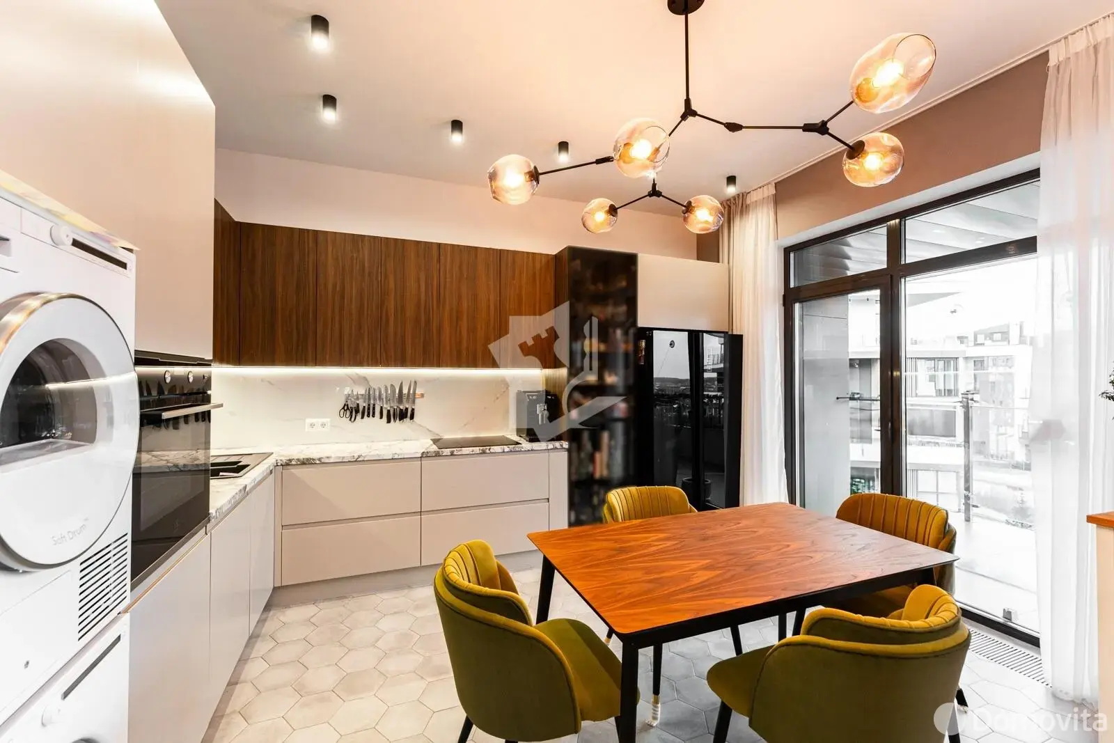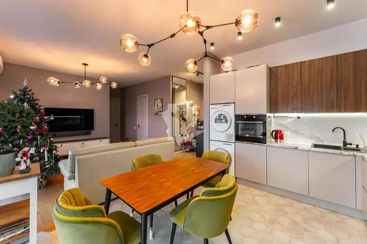 Сердце квартиры- это кухня-гостиная с выходом на террасу с потрясающим видом. Терраса укомплектована мебелью.