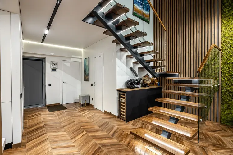 Весь ремонт сделан из качественных импортных материалов, дизайн-проект и спецификация имеется. На полу в квартире винил и керамогранит, на потолке и стенах декоративная штукатурка. По всех квартира разведена приточно-вытяжная система вентиляции Zehnder и кондиционирование Daikin, всегда свежий и чистый воздух, без открытия окон. Полное видеонаблюдение (6 камер), локальная сеть Wi-Fi с 5 точками по всему периметру и шкафом бесперебойного питания, везде теплые полы с Wi-Fi датчиками. Вся мебель выполнена по индивидуальному заказу.