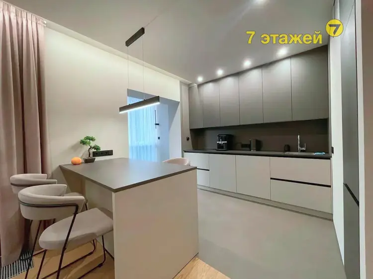 Квартира с дизайнерским ремонтом площадью по СНБ 95,2 кв.м., расположена на 4-м этаже блочного дома (свободная планировка) 2019г.п., по адресу: аг.Ратомка, Морской Риф, д.2. Дом монолитный с использованием керамзитобетонных блоков и вентилируемым фасадом.