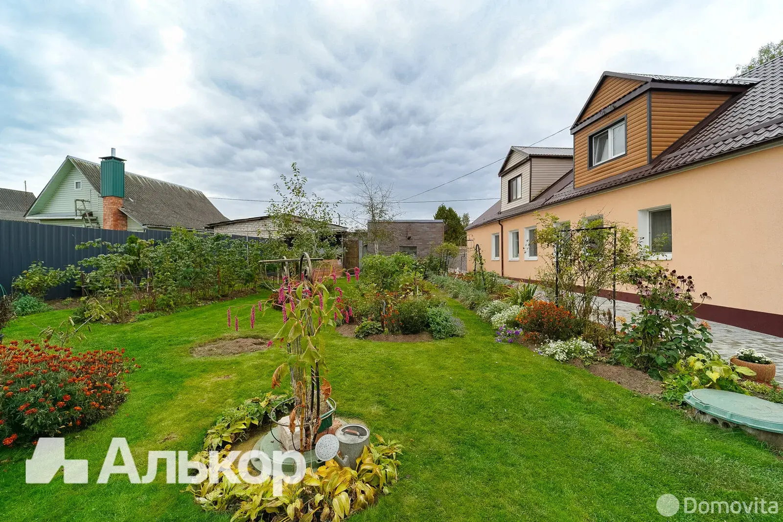 Участок 8,16 соток ровный и ухоженный. На территории находится гараж с ямой, хозпостройка для хранения инвентаря, баня и оборудованный подвал. Также есть огород и высажены плодовоягодные деревья и кустарники.