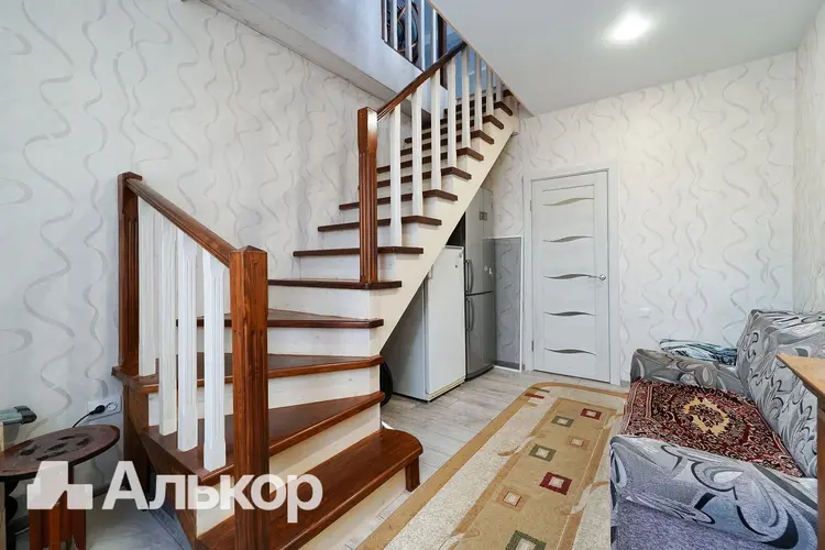 1 этаж: просторная гостиная 19,8 м2, кухня 7,2 м2, совмещенный санузел и еще 4 жилых комнаты. Высота потолка 3.15 м.