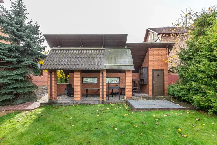 На территории обустроена зона отдыха под навесом с мангалом, есть теплица, хозблок и отопительная пристройка.