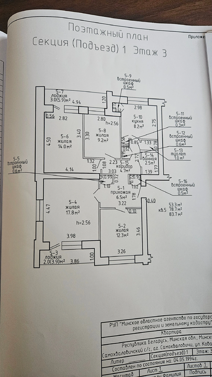Площадь комнат: 17,8 / 14 / 12,3 / 9,2 м², просторная кухня – 8,2 м².