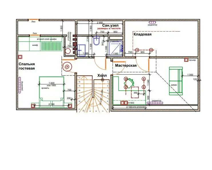 - Гостевая комната – дополнительное пространство для гостей или кабинета.