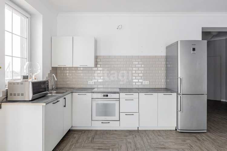 - большая светлая гостиная с кухней 52,8 кв. м. с широким окном в пол с бытовой техникой и мебелью: встроенный кухонный гарнитур с духовым шкафом, варочной панелью, холодильником LIEBHERR, вытяжкой, посудомоечной машиной BOSCH, мягкой и корпусной мебелью. Из кухни выход на большую террасу для отдыха
