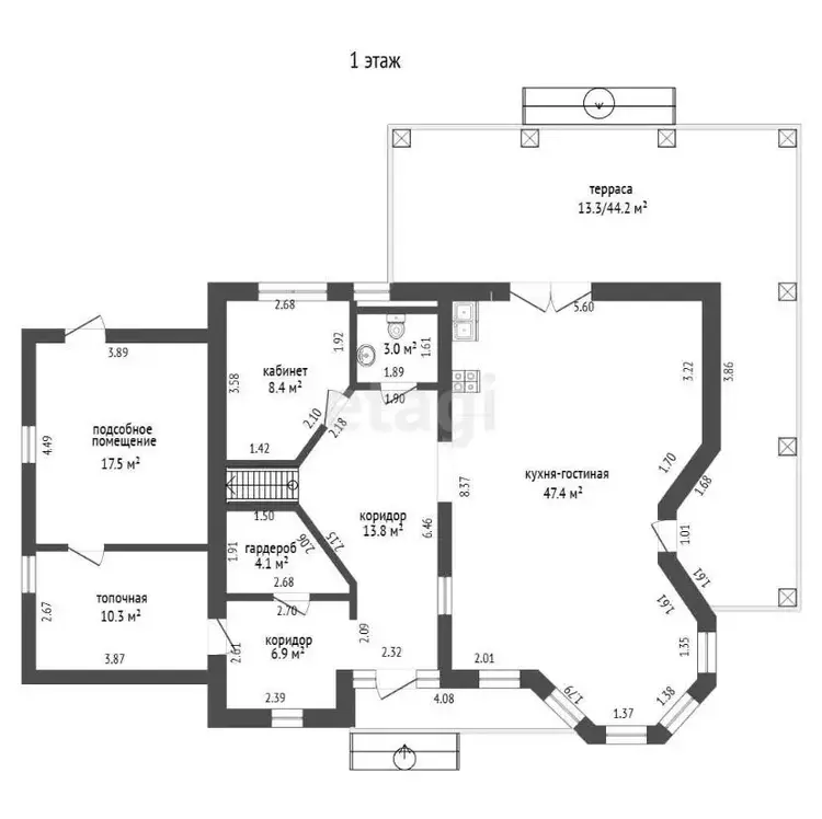 Общая площадь дома 210,4 кв. м., высота потолков 3.14 м.
