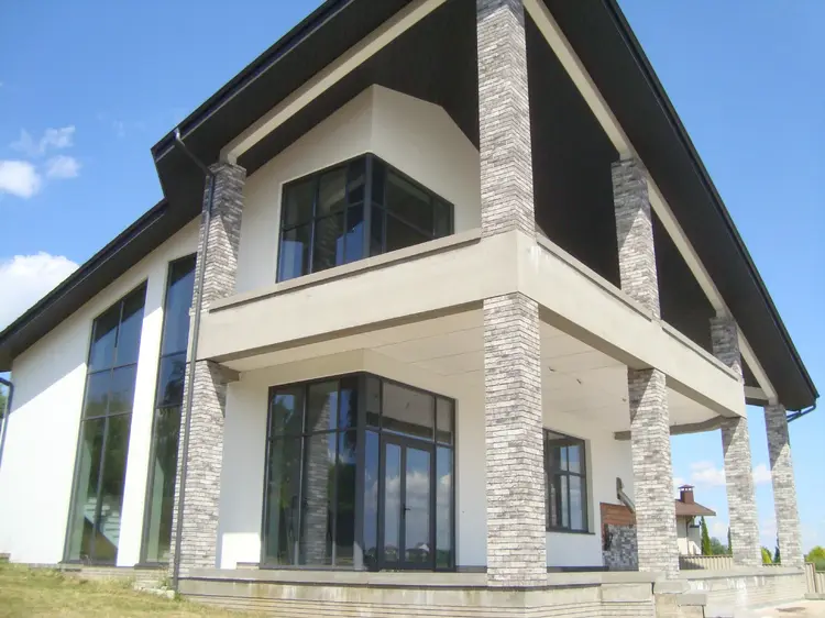 Современный стильный коттедж с панорамным остеклением, индивидуальный проект, архитектурное решение и планировка продуманы до мелочей.