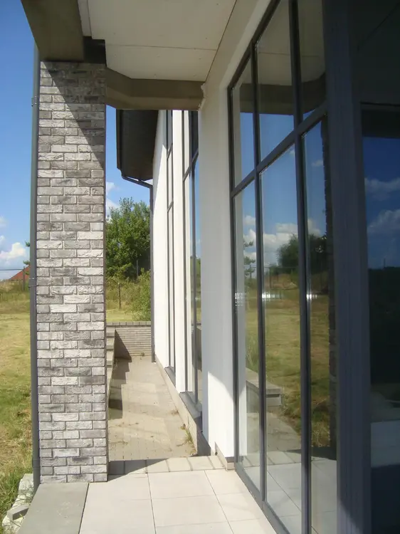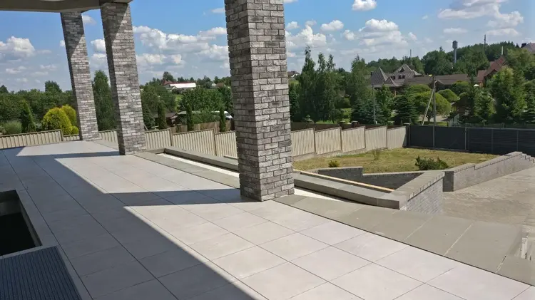 В отделке колонн использовался итальянский кирпич ручной работы в цвет дома.