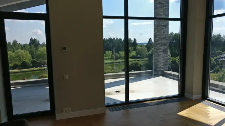 Обогрев панорамных окон осуществляют встроенные в полу радиаторы отопления.