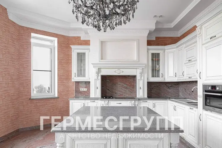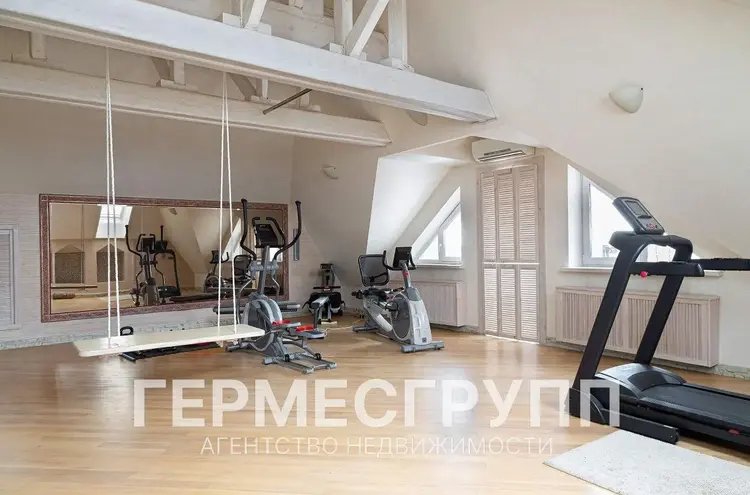 2 уровень: центр официальных приемов. Просторная гостиная с выходом на огромную террасу (110 м2), классическая парадная современная кухня с встроенной техникой, кухонным островом, комната для кинозала, дополнительная жилая комната, гардероб для гостей, туалетная комната, комната для прочего хранения.