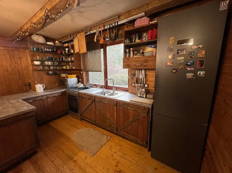 Кухня оборудована встроенной мебелью из натурального дерева и оснащена полным комплектом бытовой и сервисной техники