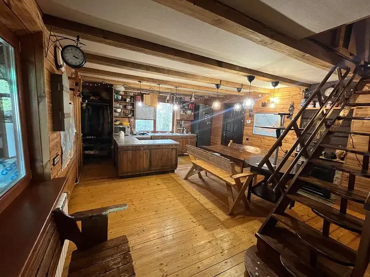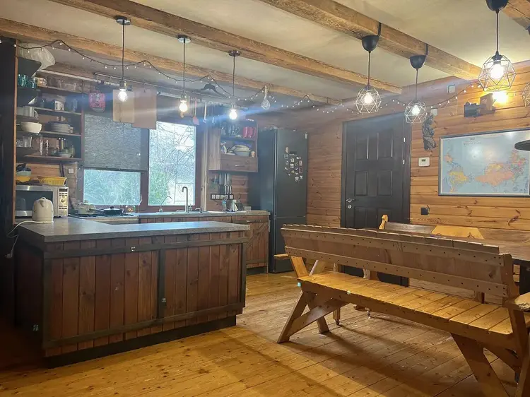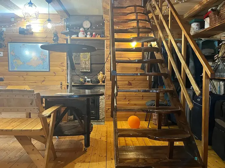 Мебель сделана специально для этого дома, в основном, из натурального дерева.