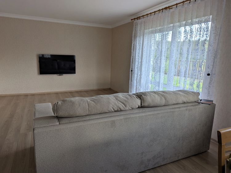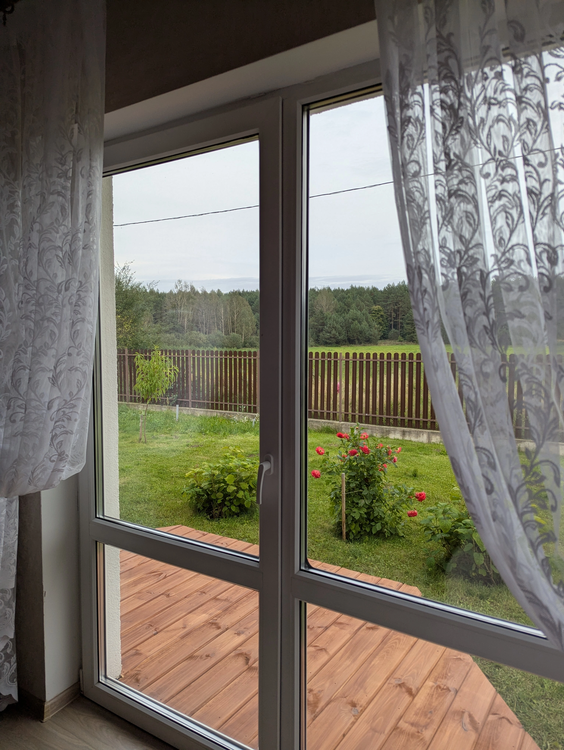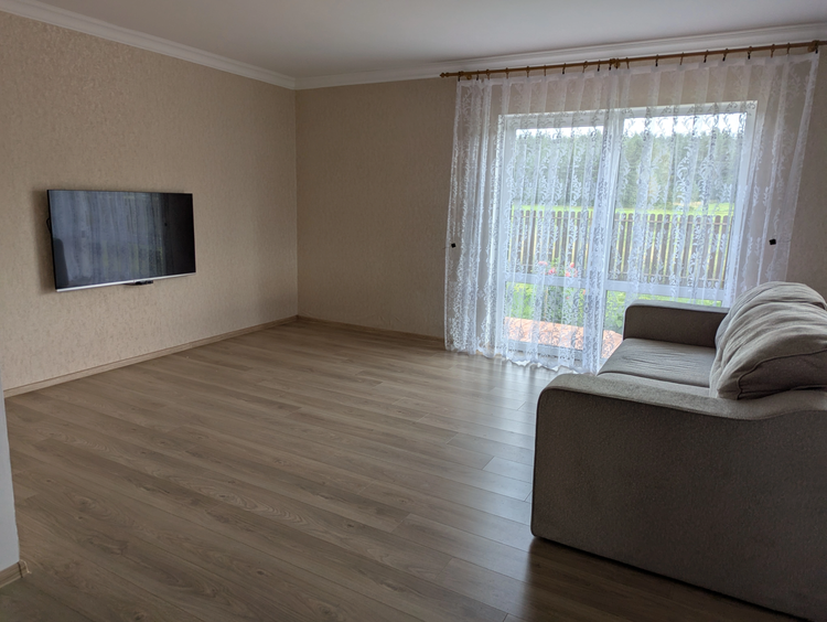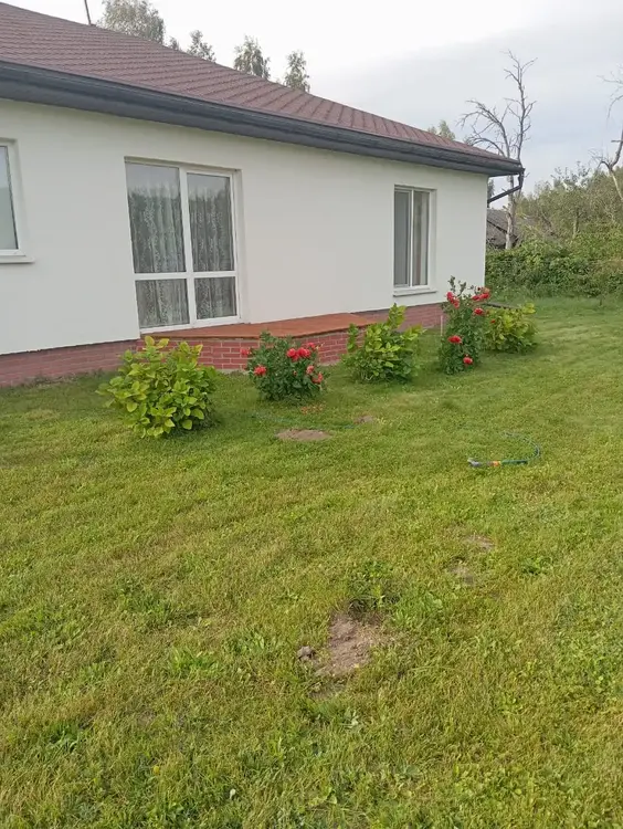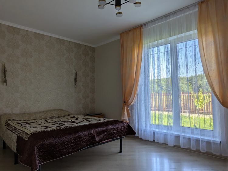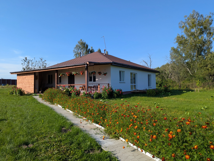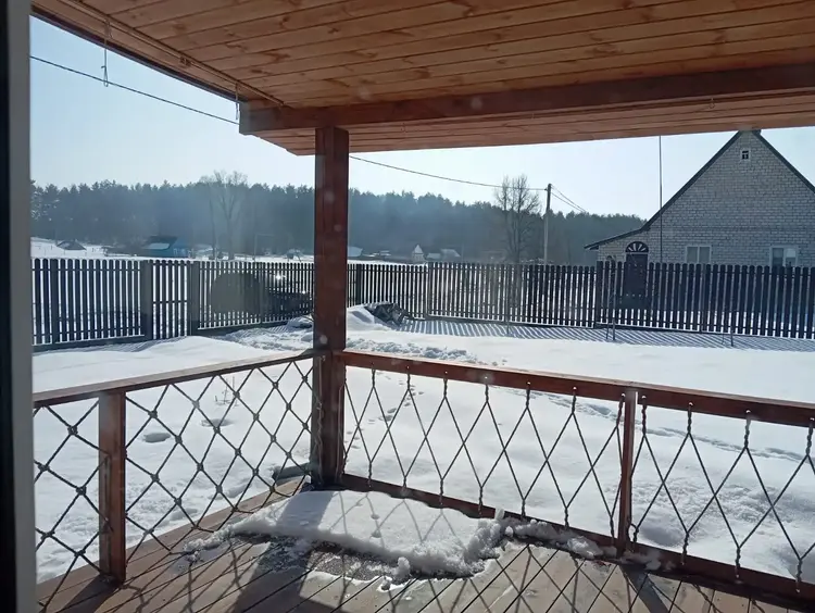 Общая площадь дома 128 кв. метров. Имеется терраса под крышей, отделана лиственницей. Материал стен – газосиликатные блоки, фасад утеплен, оштукатурен и окрашен. Фундамент - монолитная плита с гидроизоляцией. Кровля – мягкая черепица. Водоснабжение – скважина (также имеется центральное водоснабжение). Отопление газовое, установлен котел Bosh. Системы теплых полов в зонах общего пользования и гостиной. Канализация местная. Есть баня. В доме четыре жилые комнаты, кухня совмещена с гостиной, в гостиной и спальне панорамные окна. Интернет Белтелеком.