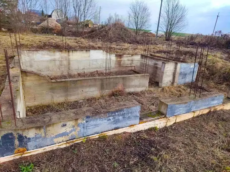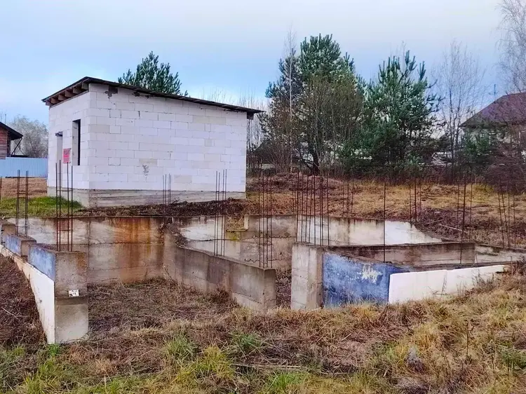Рядом залит фундамент для строительства основного дома, тоже есть проект.