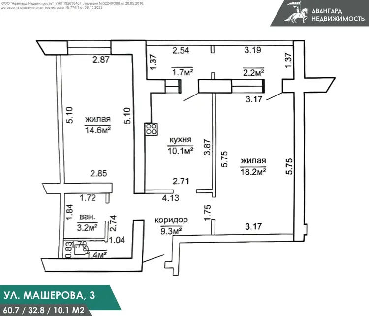 Общая площадь по СНБ 78,3 м2, жилая площадь – 47,1 м2, просторная кухня – 10,7 м2.
