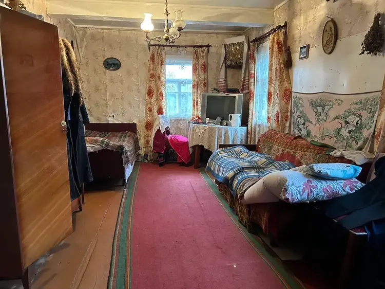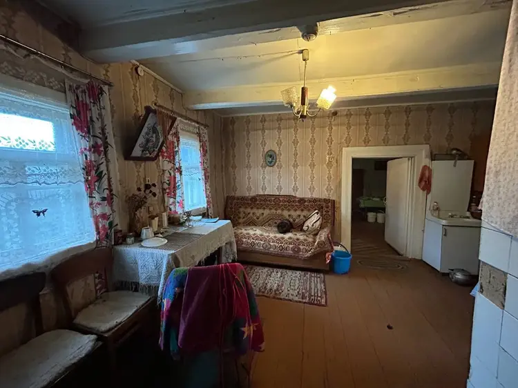 Дом + участок 22 сотки: газ, вода, ж/д станция. Деревенский дом с русской печкой (с лежанкой) и печкой для обогрева двух жилых комнат (всего 46 кв. метров, жилая 27,9 кв. м.). Основная комната с большой печью справа от входа, слева большая кладовая и по две комнаты по другую сторону от большой печи, за основной комнатой. Слева на входе в участок находится гараж с погребом.Далее по участку за домом находится деревянный сарай, слева небольшая хоз. постройка, по типу строительного вагончика. На самом участке около дома растет: яблоня, груша, черешня, сладкий виноград красный.За придомовой территорией находится большое поле под огород.По расположению и удобствам:До ж/д станции около 3 километров, ходит автобус. Газ и вода по улице, можно подвести к дому.Прямо около дома на соседней улице находятся: ⁃ Школа ⁃ Магазин (продовольственный и хоз. товаров) ⁃ Дом культуры ⁃ Музей имени Кузьмы Черного ⁃ Музыкальная школа ⁃ Церковь Св. Николая ⁃